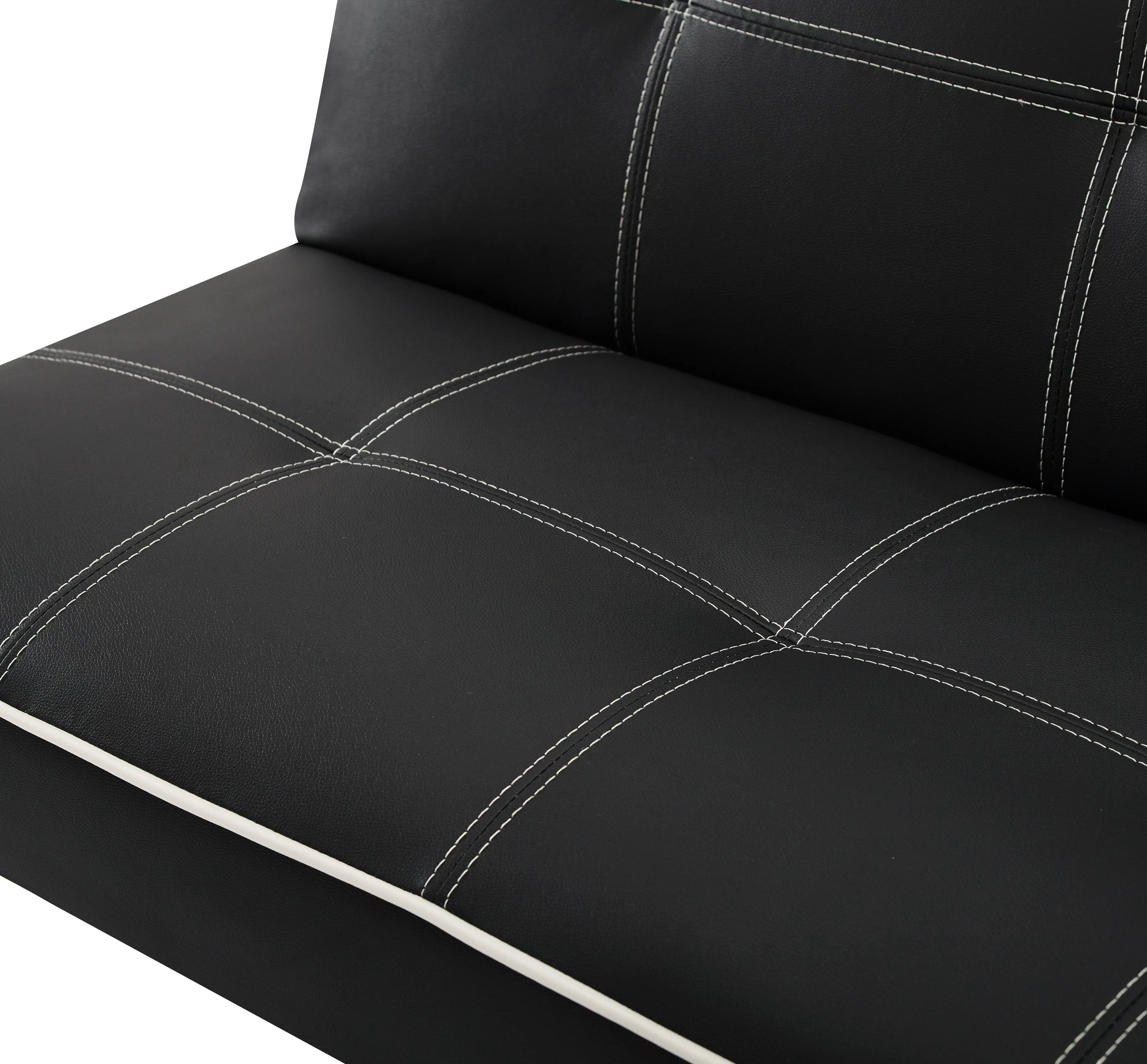 The ultimate in versatility and modern style with the Foustino Hybrid Sofa Bed. This sleek black faux leather sofa effortlessly transforms into a comfortable guest bed, making it perfect for small spaces, spare rooms, or living areas. Designed with gamers in mind, it features white edge piping for a sharp, modern look and an ergonomic shape for extended comfort. Whether you're hosting a guest, relaxing, or settling in for a gaming session, the Foustino Hybrid Sofa Bed is your all-in-one solution.