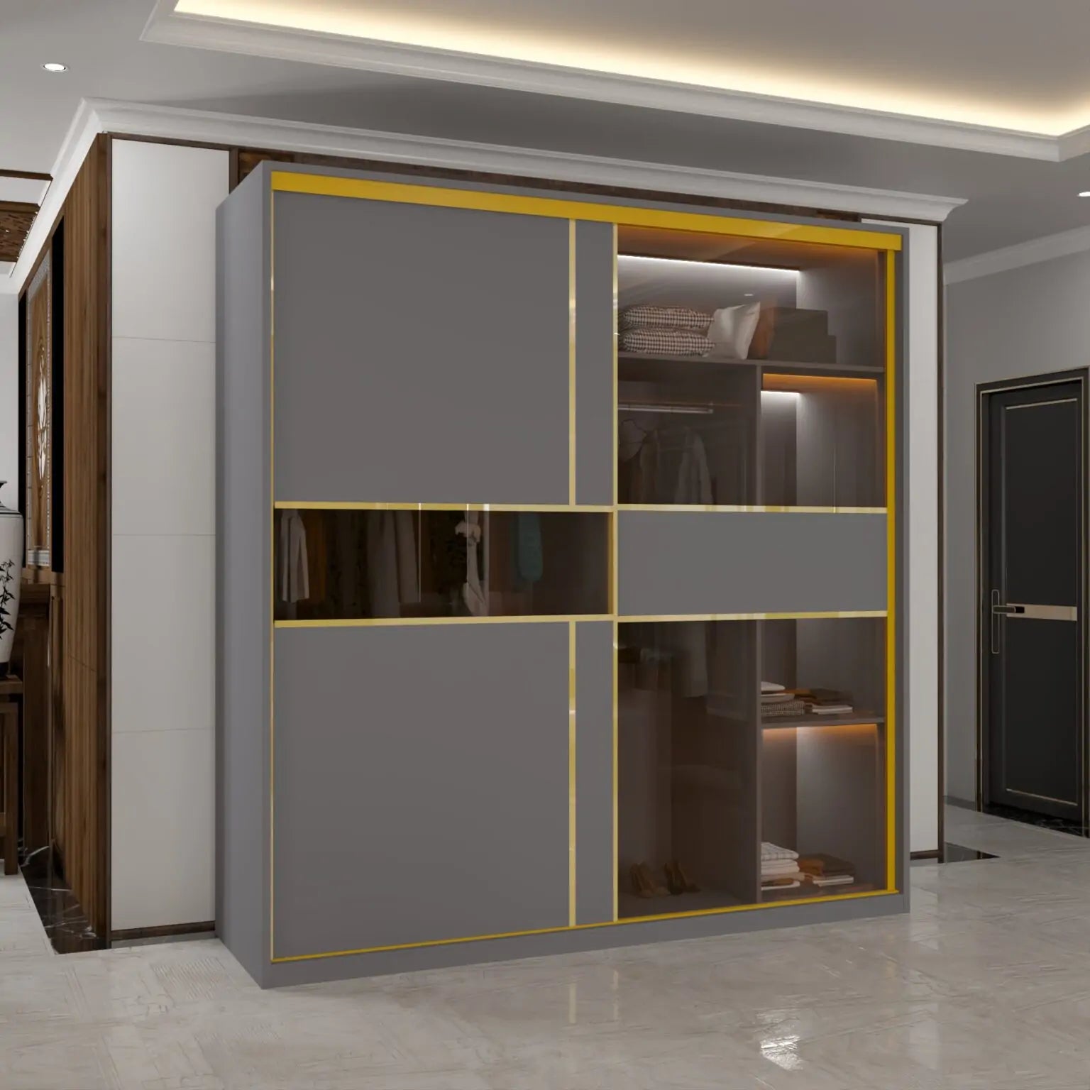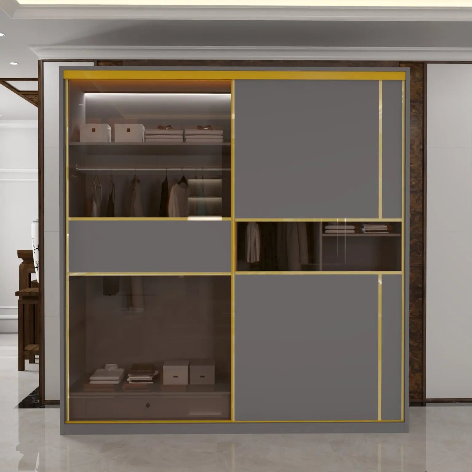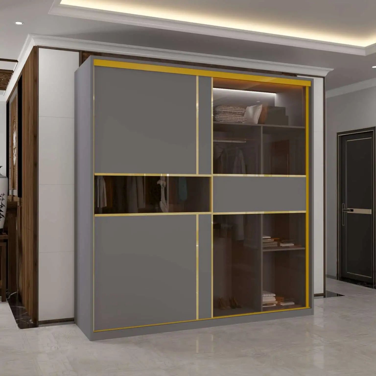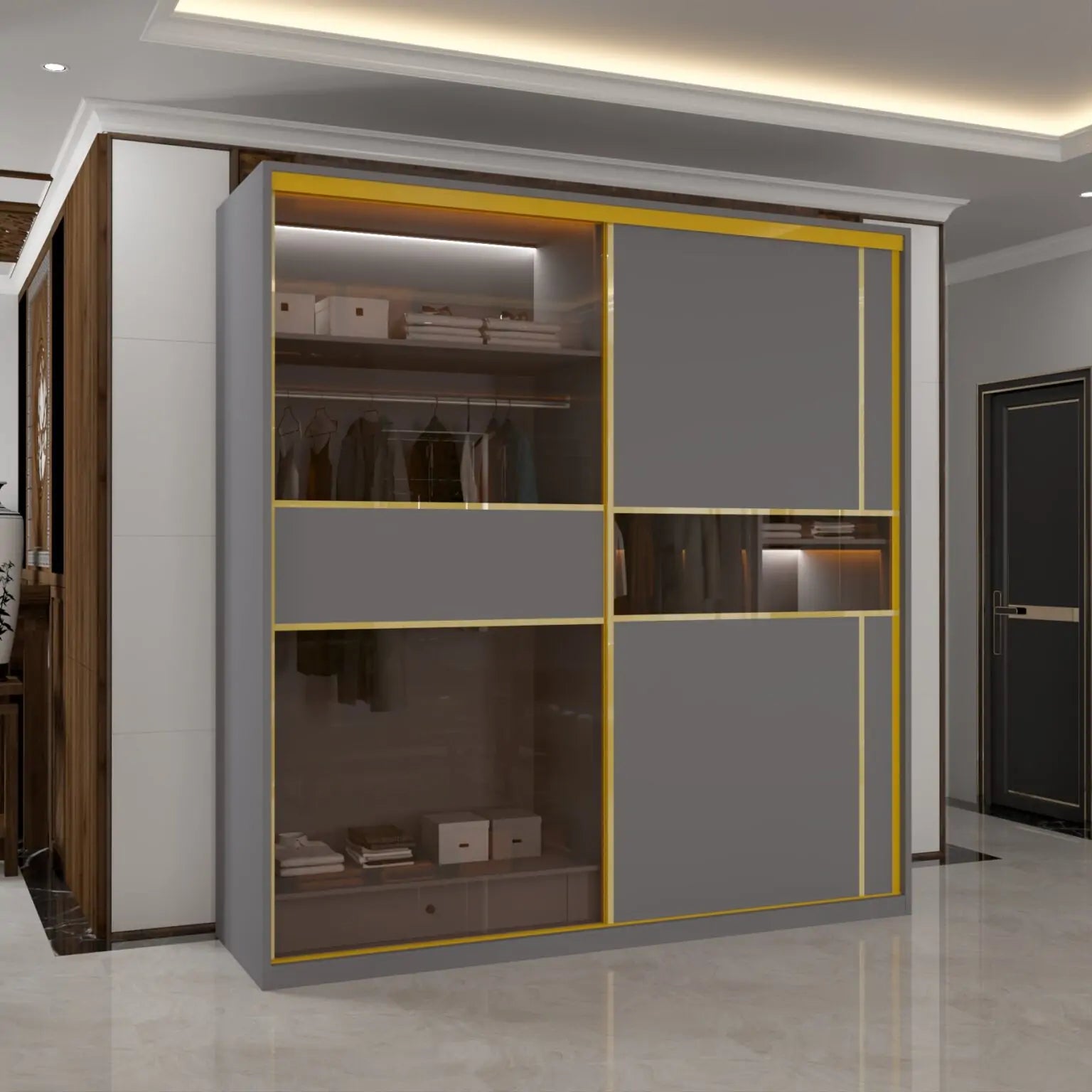 MDF Glass Sliding Door Wardrobe