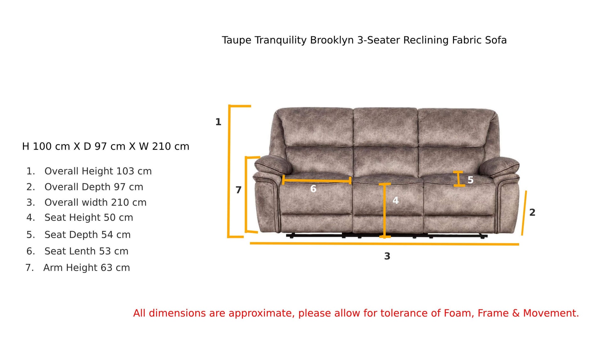 Milano 3 Seater Reclining Sofa Taupe Fabric