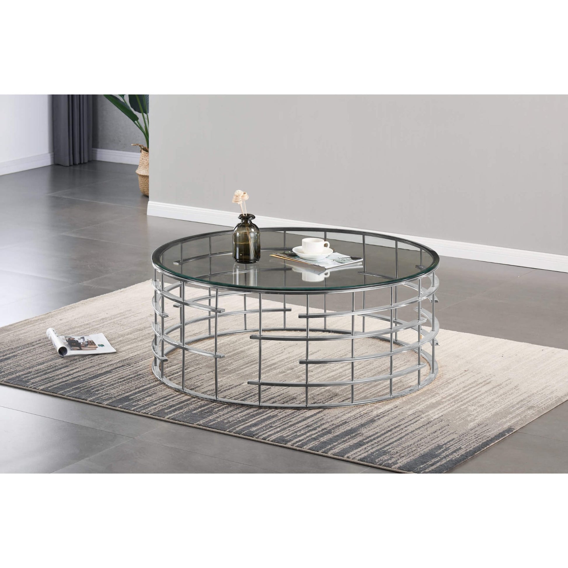 Missouri Round Coffee Table Clear Glass & Silver Frame