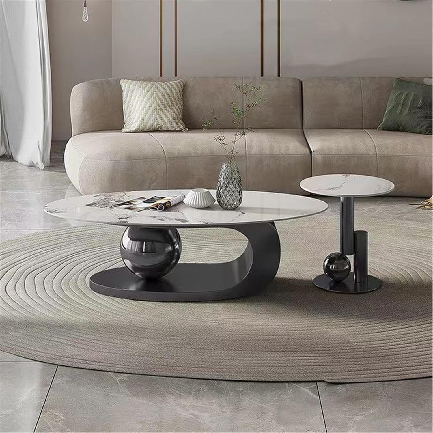 This Modernique Avorio Oval Coffee Table is a stylish and functional centerpiece for any living room. It features a durable sintered stone top with a beautiful marble effect, supported by a sturdy metal base. Its elegant oval shape and modern design make it a perfect addition to contemporary home decor.