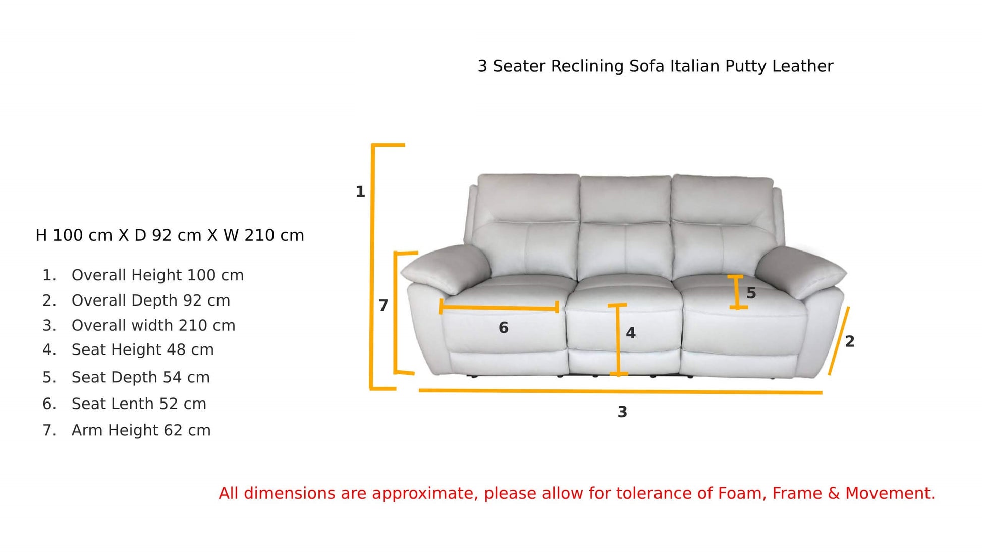 Relax in style with the Rimini 3-Seater Putty Leather Recliner Sofa. Upholstered in soft, durable putty-coloured leather, this sofa features three smooth reclining seats for effortless comfort. Its clean design and plush cushioning make it an ideal addition to any modern living space.